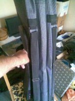 Плечевые ремни у моей снизу. Сидит нормально, кидаться не мешает. Пляж-камни выдерживает.