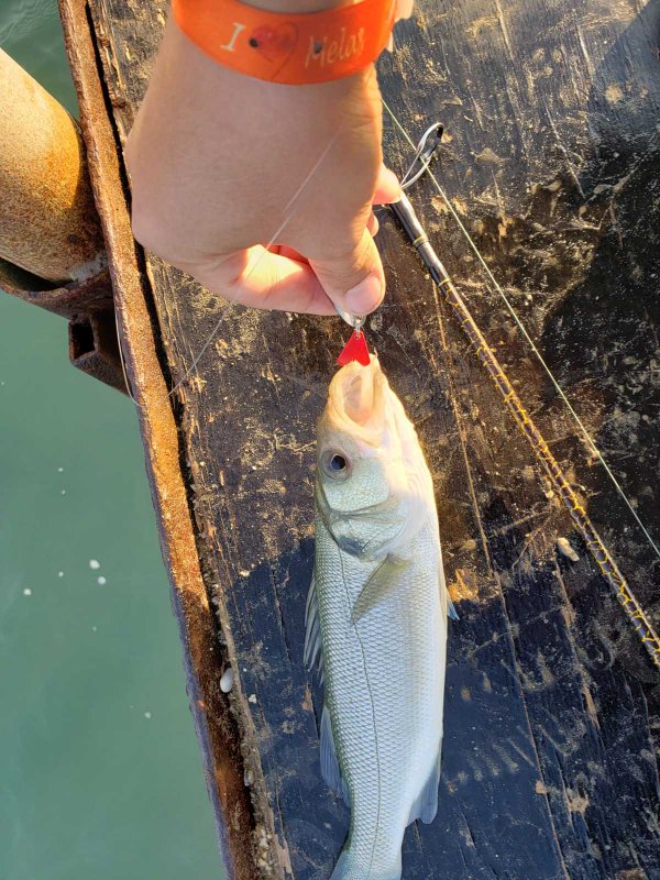 Коллеги, привет. Рано утром пробрался на пирс мимо охраны. Палка до 15 г, блёсны и пилькеры, немного песчаного червя Marukyu Power Isome, три цвета. Итог: на червя несколько обладов, пилькеров оторвал много без толку, а на 10.5 г кастмастер вытащил рыбу, местный опознал как levrek. В целом доволен, хоть и не готов был. Червя стаскивают, держится хуже обычной резины, крючков мелких не было, 7-8 номер велик, нужен 12-й, реализация лучше была бы. С пирса 2.10 кидает так себе. В следующий раз возьму палку до 30 г и потяжелее железо. Ожидал большего от пилькеров - возможно просто не докидывал 12 г, было пару тычков и куча зацепов. Буду лучше готов к морской рыбалке в береговом формате.