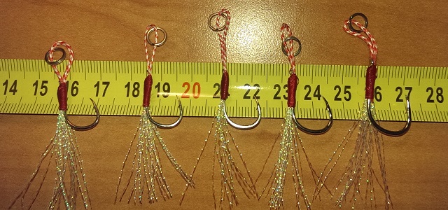 Под пилькеры 12-60 г беру ассисты с запасом - свободы много, ошибёшься на размер - не страшно. Главное, чтобы крючок был острый и цепкий. Маловат? Ставь второй - и погнали.