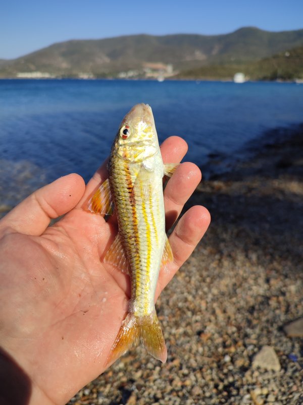 Пока ждал самолёт, хотел сфотать саргана. В итоге поймал барабульку. Самая вкусная рыба, имхо. Местные объяснили, что заргана правильно было бычить на порезанную ставридку с "кашемиром". Размер моих шпицев их впечатлил.