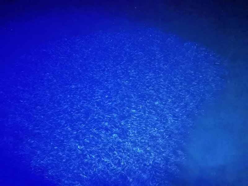 Пирс на сваях, хорошее освещение. Вечером тучи малька - на фото это сплошная рыба. Снасть не УЛ, можно бросать до 45 г без опаски. Для шор-джигинга площадка что надо.