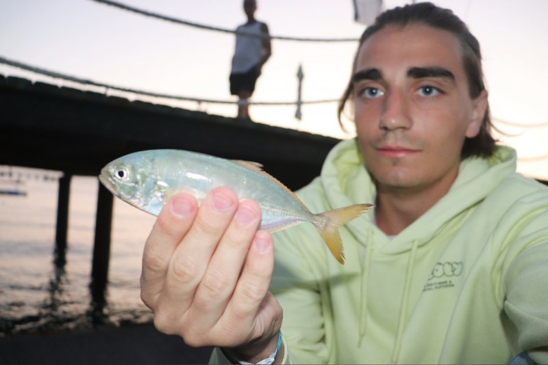 Сентябрь на жарком берегу. На территории отелей ловить нельзя - ночами пробирался на пирс, до первого «наряда». Поклёвок море, реализации мало - менял подсечки, веса, размеры. Breaden 13VIB30 принёс первую рыбу, дальше вернулся к силикону 1.5-2 г - падение в 4-5 м читается, палка Breaden GRF Trevalism Kabin 606CS-TIP оживает. На падении взял желтопёрый каранкс, потом ещё пара «чудиков». На рассвете подошла стая каранксов - успел подловить, но охрана попросила завершить. С пляжа добрал пару малышей и закрыл смену. Морская рыбалка в отеле - это квест.