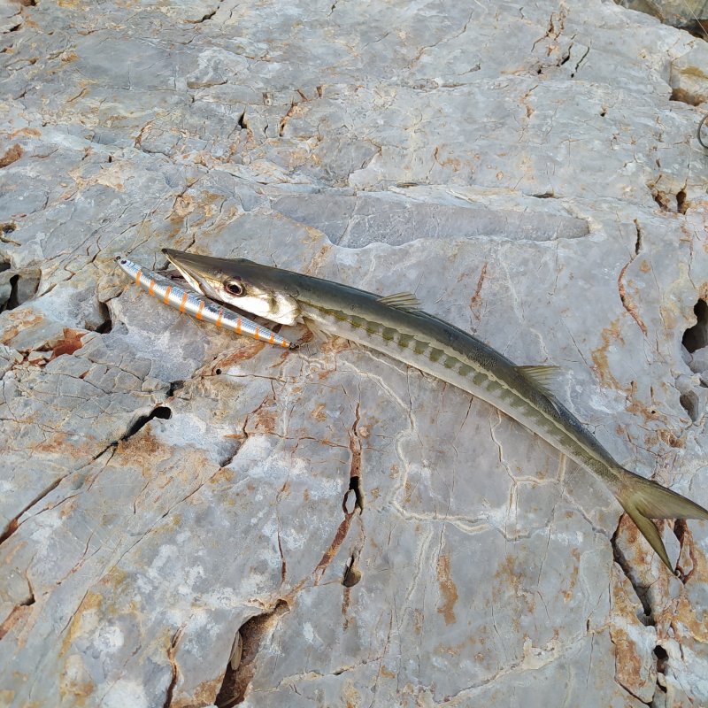 Вчера вечером, Аланья, большой маяк. Три барракуды - но мелковаты... На следующий раз снасть потяжелее возьму, миноху побольше.