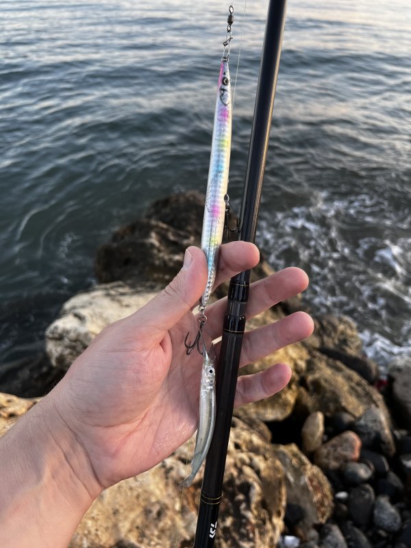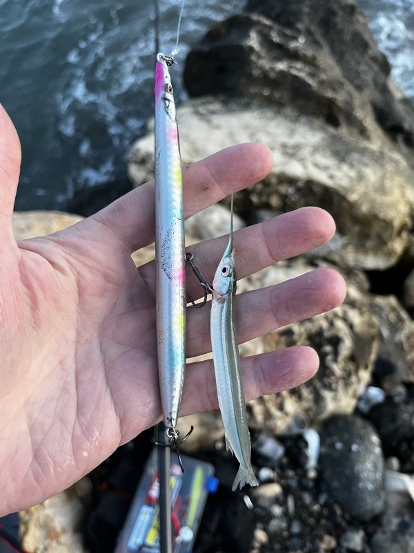 Какая-то шальная мелочь виснет на карандаше одна за другой. Посмеялся над первыми двумя, дальше снял приманку. Нормальной рыбы нет - лаврак и луфарь пропали.