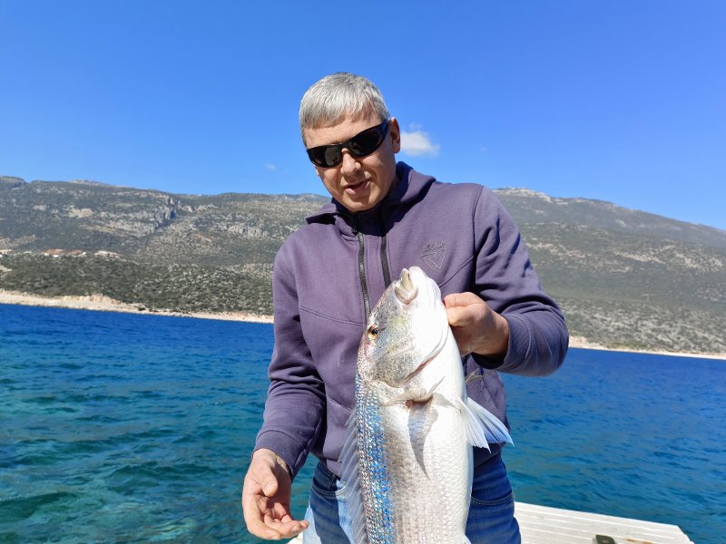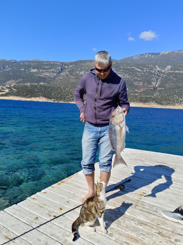 Заброшенный отель, ловля с мостков. Раздач не было, но один удар по силиконовому раку на джиге подарил паровоз. Спин в дугу, рыба тянет метра по 30, фрикцион то подтянешь, то отпустишь. Плетни хватило. Уровень ниже мостка, брать нечем. Лесенка скользкая, попросил Олесю подержать спин. Рыба зубастая, пальцы щелкает как собака, стремно. Под жабры кое-как завел и поднял. Первый такой трофей, на весах 3500. На сковородке огонь)