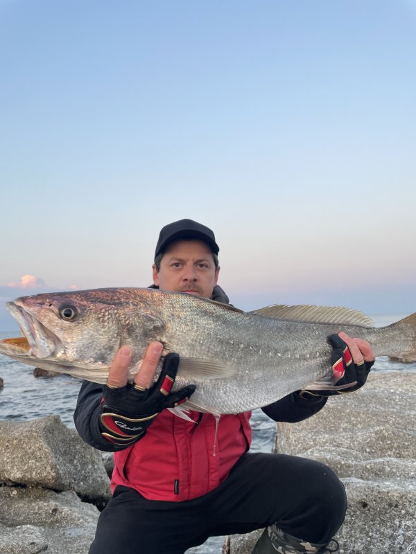 Вчерашняя рыбалка: в темноте пара небольших лавраков, на рассвете горбыль. Свинг Импакт 4.5 на джиг-голове 17 г отработал.