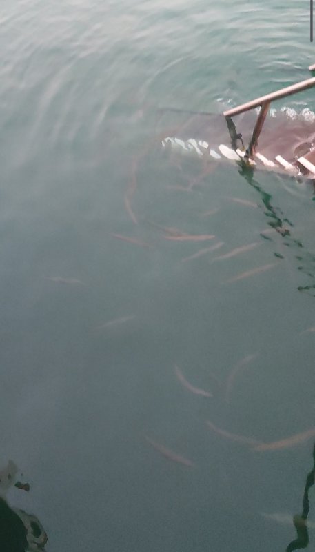У меня, возможно, тоже что-то не то с руками. Воблер kosadaka 130, который отработал у комрада crossman, у меня в коробке оказался. Но на него даже ни одного выхода не видел, хотя на другие воблеры сибас хоть както реагировал, даже один раз пытался укусить. Взял в местном магазине силикон на 170 TL, но и это не помогло. Местные балыкеры сказали, что выход сибаса очень кратковременный, гдето в районе 6 утра. Барракуда тоже почти все время пассивная, потом быстро наедается гдето через час после заката, хватая мальков в свете налобного фонаря.(на фото я заснял ее на отдыхе). Поймал малька желтохвостой барракуды. От нуля ушел, как говорится Придется еще раз вернуться. Балыкеры говорят, что в районе Фетхие осенью в сентябре хороший сезон по рыбалке
