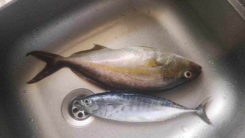 С 6:15 до 8:00 клевало бодро. Duo 75 Sprint собрал тралов, Pocopoco тоже порадовал пятью левреками. Турок рядом взял крупного трала на волкер и амберджека на пилькер. Свой улов отдал, тонущие стики опять не успел проверить.