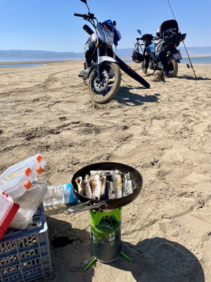 Клев развернулся только после обеда: до этого пара пустых тычков. На троих собрали 4 саргана, 5 малышей тунца, 2 ставриды и 3 ромбиты. Почти всё добрали пилькерами: сверху брали сарган и тунчик, со дна - ромбита. На поверхности кто-то серьёзный ушёл, флюр перекусило. Здесь морская рыбалка на этом участке выдалась бодрой.