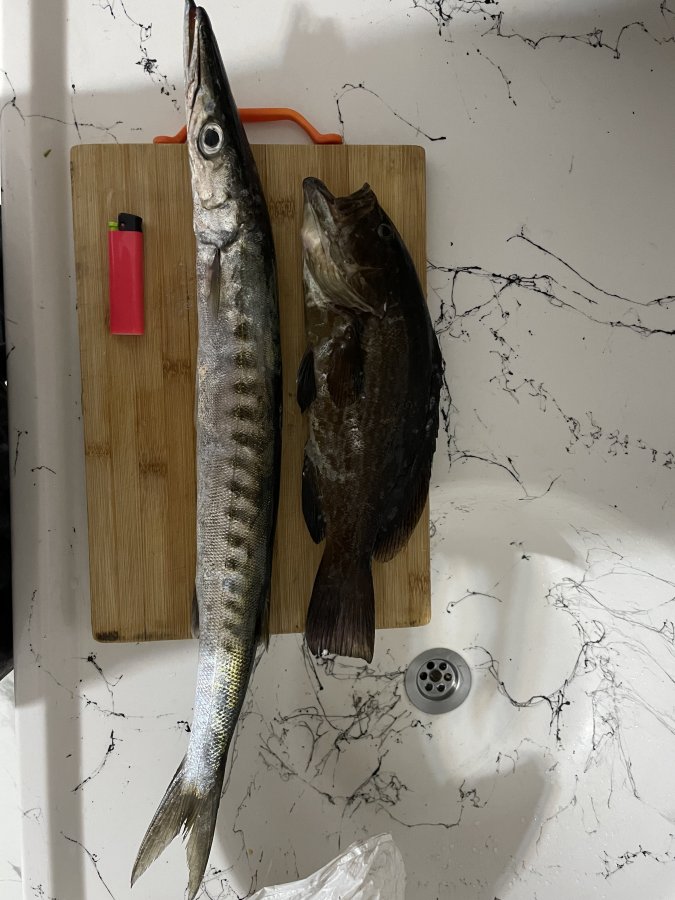 Рыба подошла к берегу. На самом закате один группер и две барракуды. Всё на Orbit 130 от «медведей». Морская рыбалка на закате у нас часто такая - короткое окно и быстро домой.