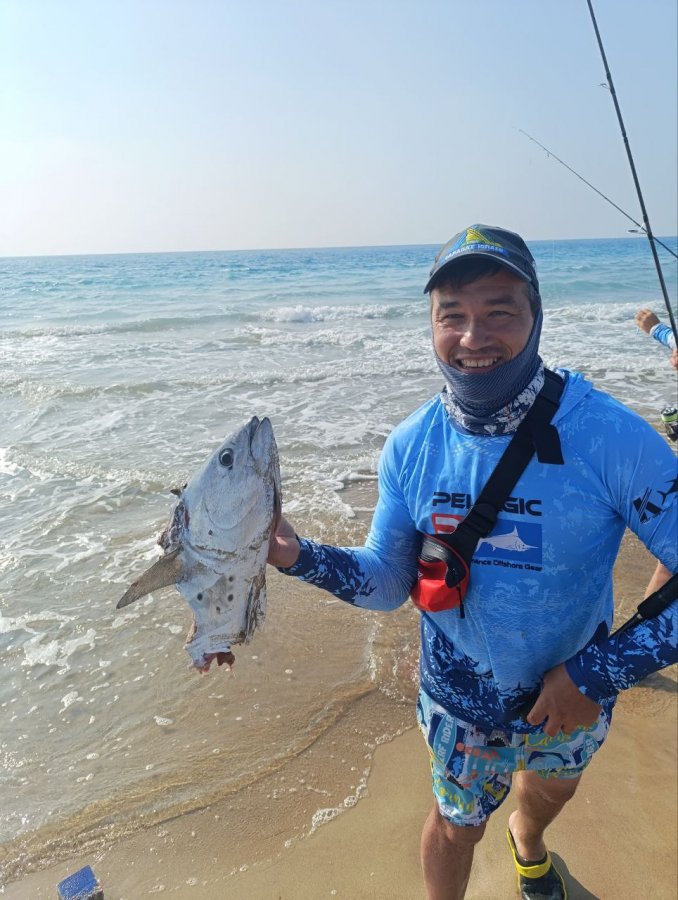 Это был пятнистый тунец килограмм на восемь. Отработал без истерик, но заряд бодрячком дал.