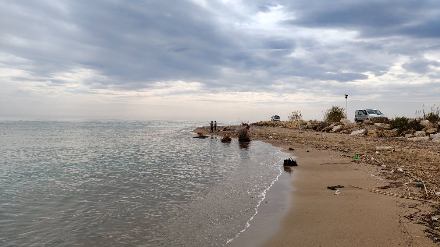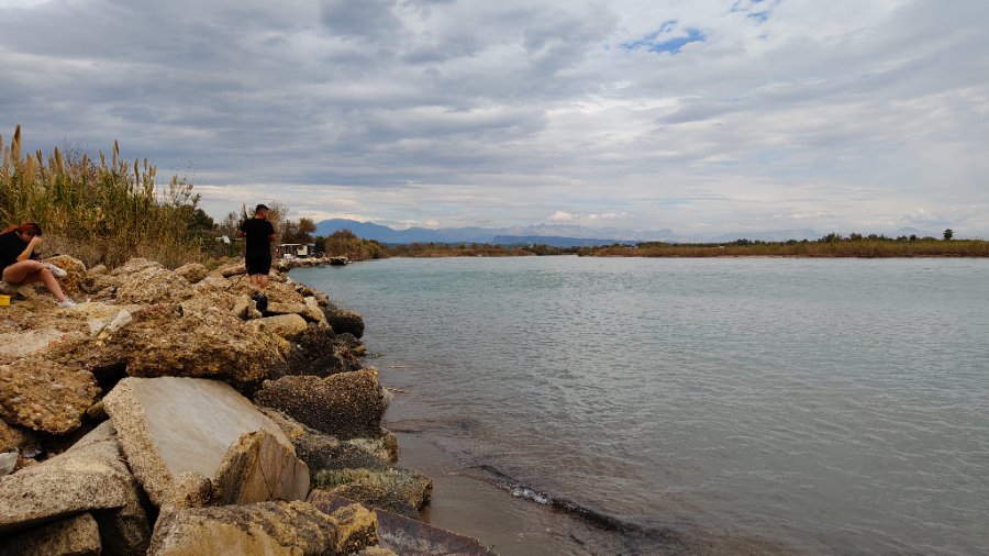 С пляжа по силикону ноль, дошёл до устья - на нереиса поймал местную «ялдырму». Все вокруг ловят ставкой с курицей. Дальше камни и струя, 25 г ратлин до дна не достал, тяжёлых головок не взял - зря. Турок показал рабочее: джигголовка 15-20 и белый силикон. Морская рыбалка в междуречье перспективная, но веса нужны.