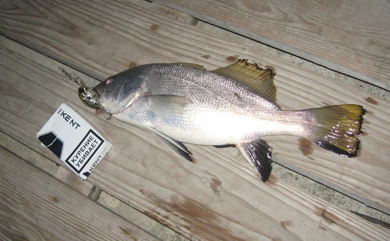 Сомневался из-за «мохнатого» дна, но снасть отработала. За ночь потерял лишь две тирольки и один воблер. Полведра ершей на один воблер, плюс первый горбылёк. Плетня 0.17, поводок моно 0.28, тирольки 20 и 30 г, Major Craft 10–42. С пирса бомбарда не добила стаю — самодура не было.