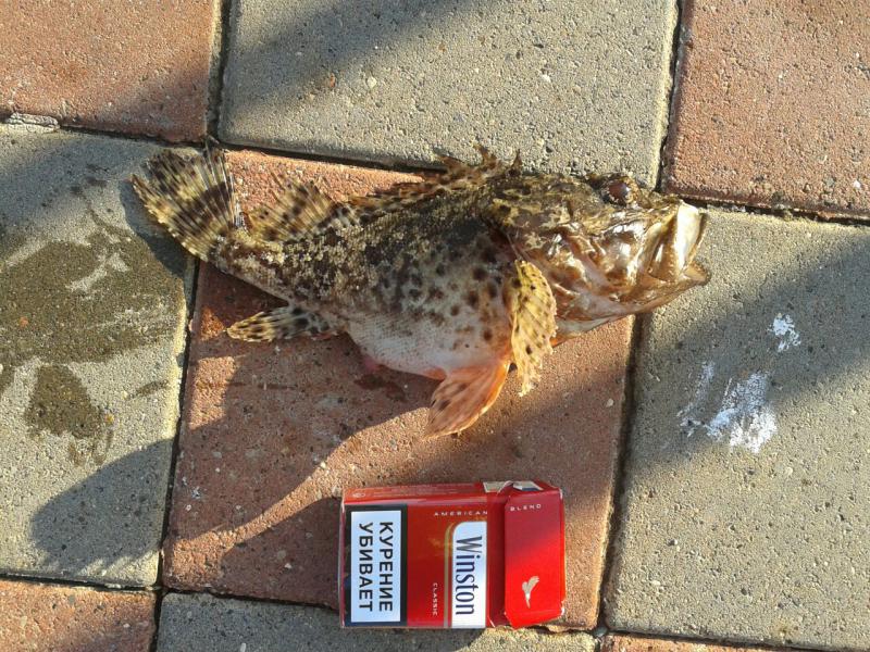 01–11. Ловил с высокого пирса. Спиннинг 3.9, груз 40–70 г, плетня, оснастка из монки 0.26, поводки 15–25 см, длинноцевьёвые крючки с насечками. Насадки: зелёная морская креветка, «ашановская» ошпаренная, морской червь, кусочки мяса. Карась, скорпена, сарганка и кефаль по своим правилам. Крабика достал из пасти крупной скорпены.