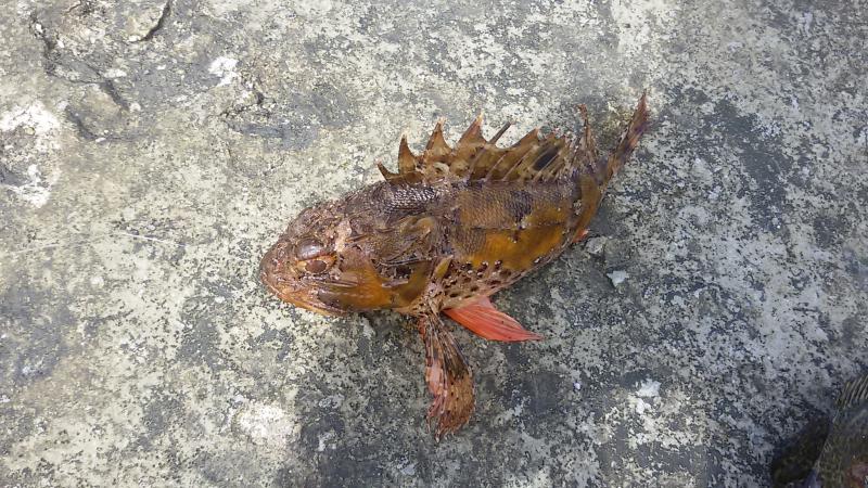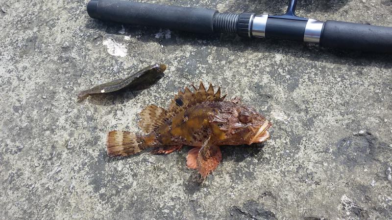 После завтрака на пирс. Отводной с креветкой — зелёнушки и «собаки». Особо порадовал «окунь» или морской ерш с красными плавниками, ~300–400 г. Всех отпустил.