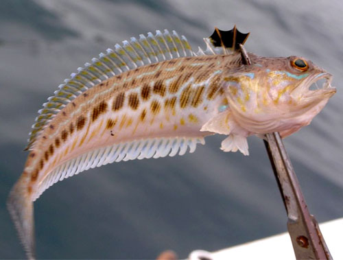 Показал дракона. Напоминание — ядовитые шипы, беречь руки. Морская рыбалка на Чёрном море требует аккуратности.