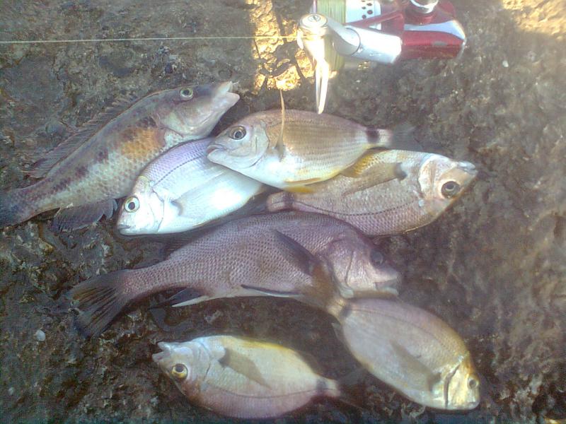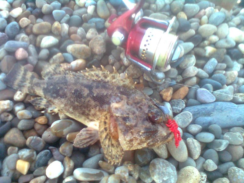 Днем карась жевал резину, утром и вечером попадался некрупный горбылик и упитанная скорпена. Несколько сходов в темноте и один обрыв. Местные ловят кефаль на большие бомбарды и морского червя.