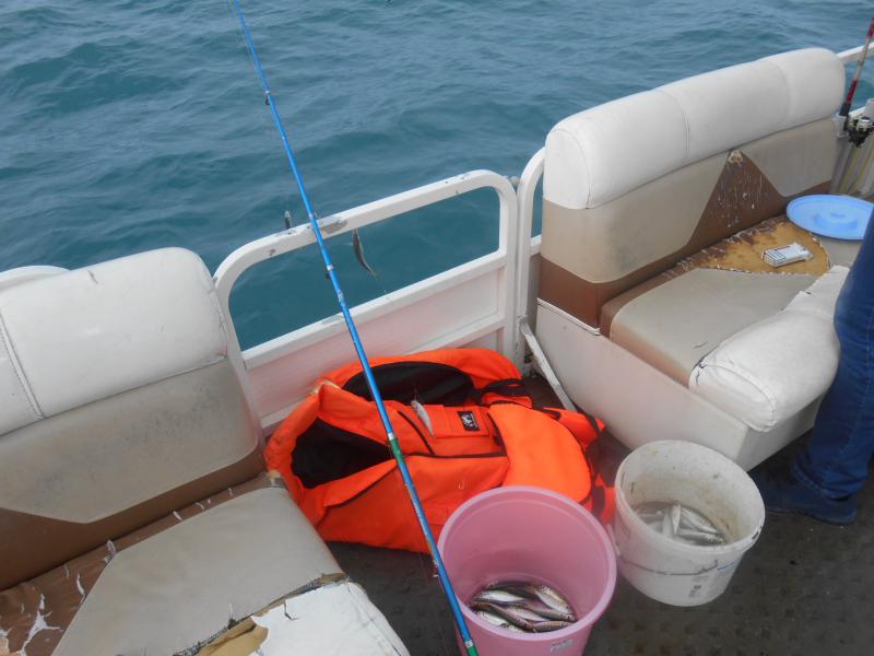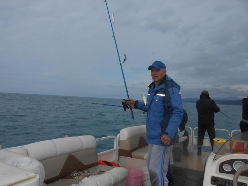 С лодки впервые: на глубинах 30–40 м ставрида уверенно, попадались луфарь и одна селедка. Средний темп — около 5 кг за три часа.