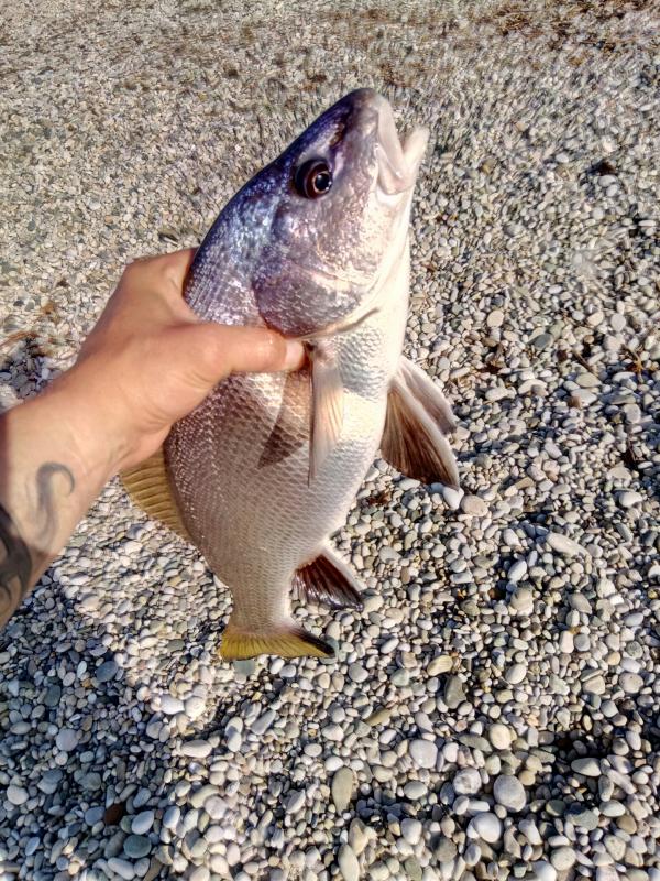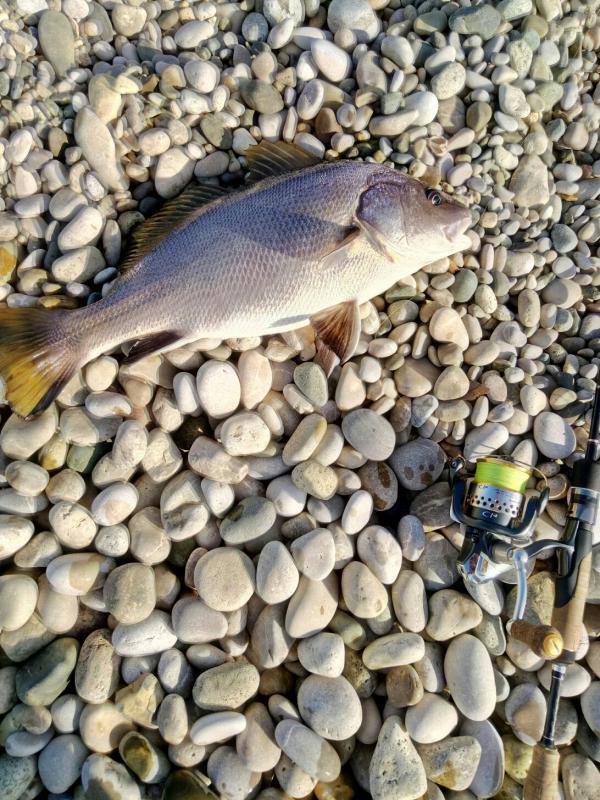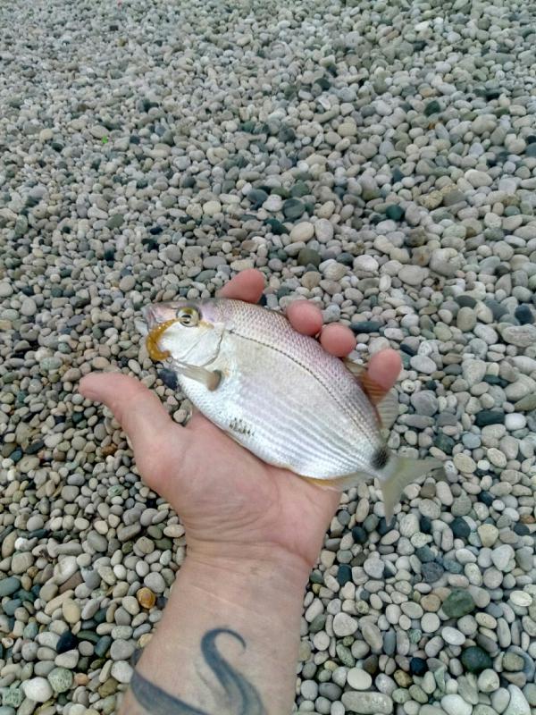Гудаута, городской пляж и волнорезы. Ловлю на 2–5 г, силикон от разных брендов, «раки» — вещь. Горбыль чаще до 0.5, но вышел на 1.2. Морская рыбалка в Абхазии щедра.