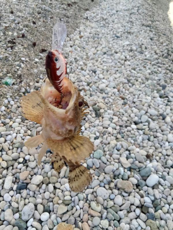 Ловлю на дюймовый слаг на 2 г — карась клюёт на выбросе. Кастмастеры молчат. По приливу ставридка и рулены. На воблеры отозвалась скорпена, горбыля сегодня не нашёл.