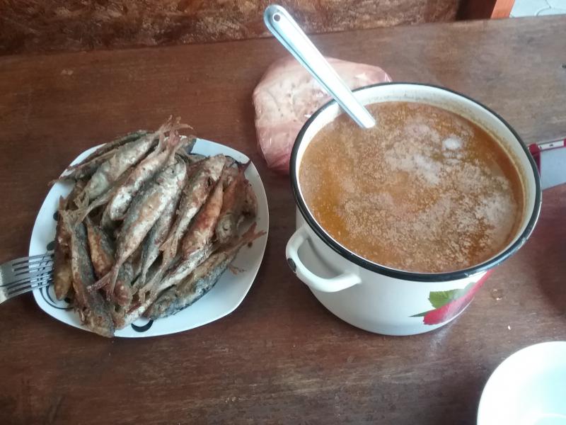 Обед сегодня... Что взял в улов и на что клевало у берега, чтобы повторить завтра.