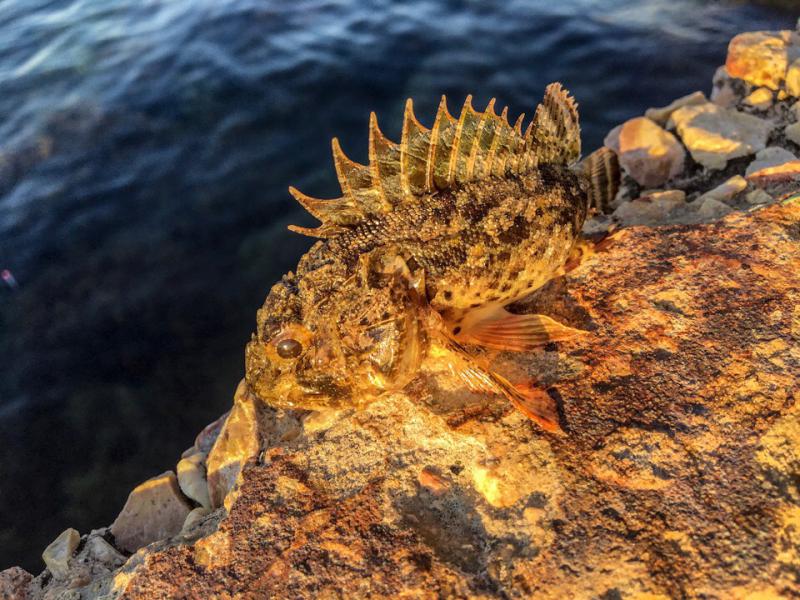 Начал на прозрачном пляже с галькой. Скорпена первая, затем ласкирь начал «обрезать» хвосты — подобрал микрокрюк на шарнире. Ночью ставрида, шарнир работает вопреки советам. Фавориты: Ecogear Aji Must и Soft Sansun. Морская рыбалка в первый день — набор нюансов.