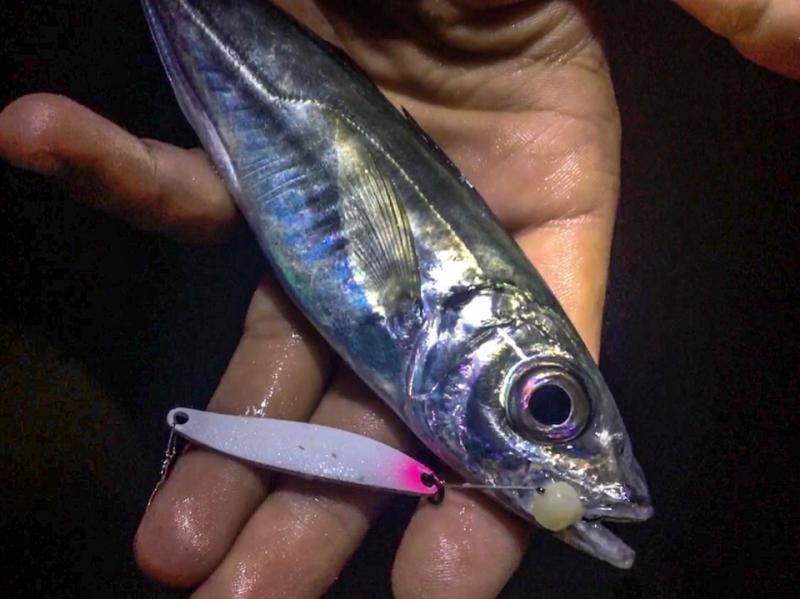 Вечером ласкири и скорпены, ставрида позже. Работал Ecogear Soft Sansun 1.3 г, ночью поднялся вес до 2.5 — доброс по ставриде со дна. Когда отошла — ушёл на SV Flash Line с ассистом и светонакопительным Grass Minnow. В 1:40 клев стих. Морская рыбалка ночью — смена весов решает.