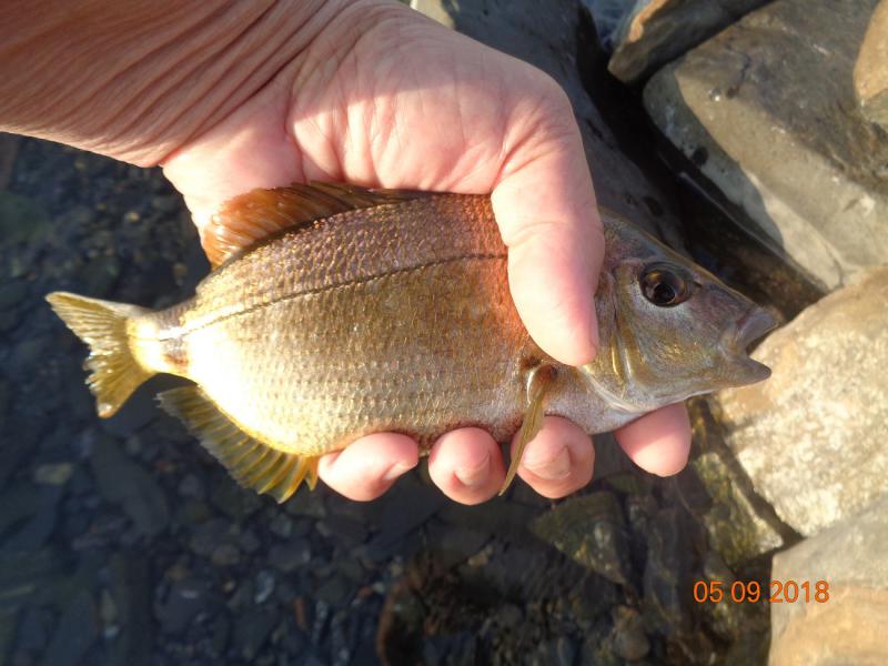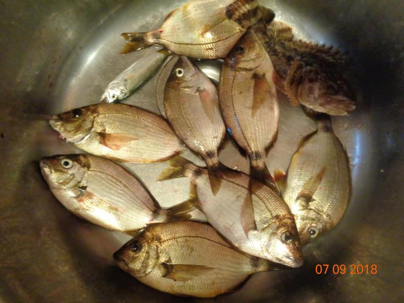 Б. Утриш, шторм до отъезда. Наживка — курица и кальмар, бомбарда и блестящий крючок. С утра — скорпена и карась, днём — луфарь откусывает. Фотоотчёт приложен в теме. Морская рыбалка на Утрише возможна и в ветер.