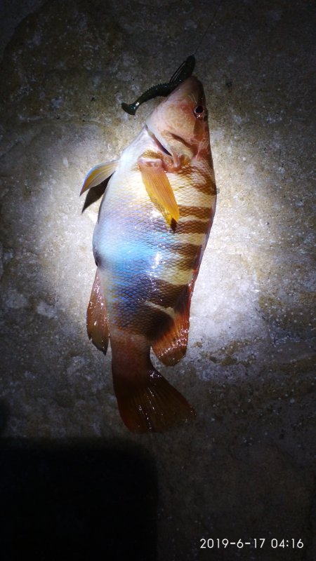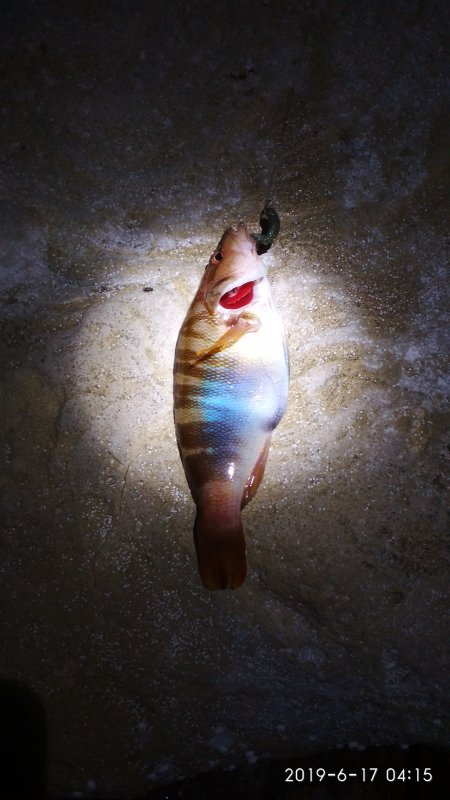 Ночью пошёл за крупной рыбой с удилищем до 14 г. Два монстра сошли, крючки Crazy Fish разогнуло. Из необычного — окунь-подкаменщик, говорят редкий. Морская рыбалка на лёгкой палке — риск.