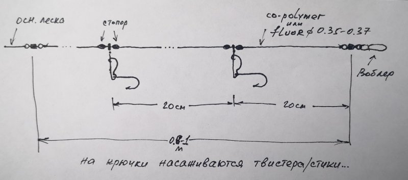 Ставлю перед воблером/пилькером две «рыбки». В солёной воде — тёмные, в пресной — светлые. Эффект погони работает: у рыбы срабатывает отбор добычи. Морская рыбалка и пресная используют один приём.