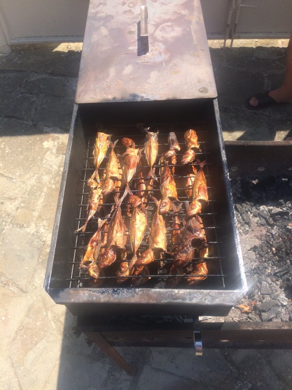 С племяшей сделали солёнку и копчение. Всё довезли отлично, вкус держится. Морская рыбалка на Чёрном море продолжается уже на кухне и в банке.