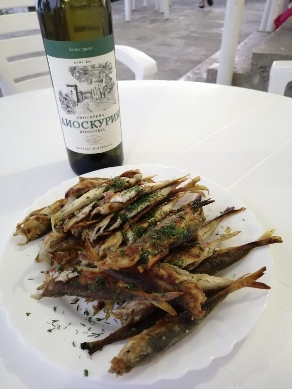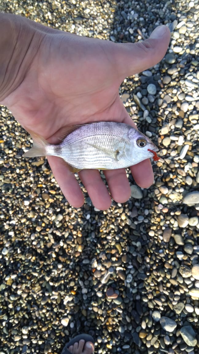 Цандрипш без волнорезов. Ловились барабулька, мелкие караси и скорпенки на тирольку с «маракуйей». Местные — на навозного червя. Ночью оторвался по ставридке с 22:00 до «усталой руки». Морская рыбалка в Абхазии щедра ночью.