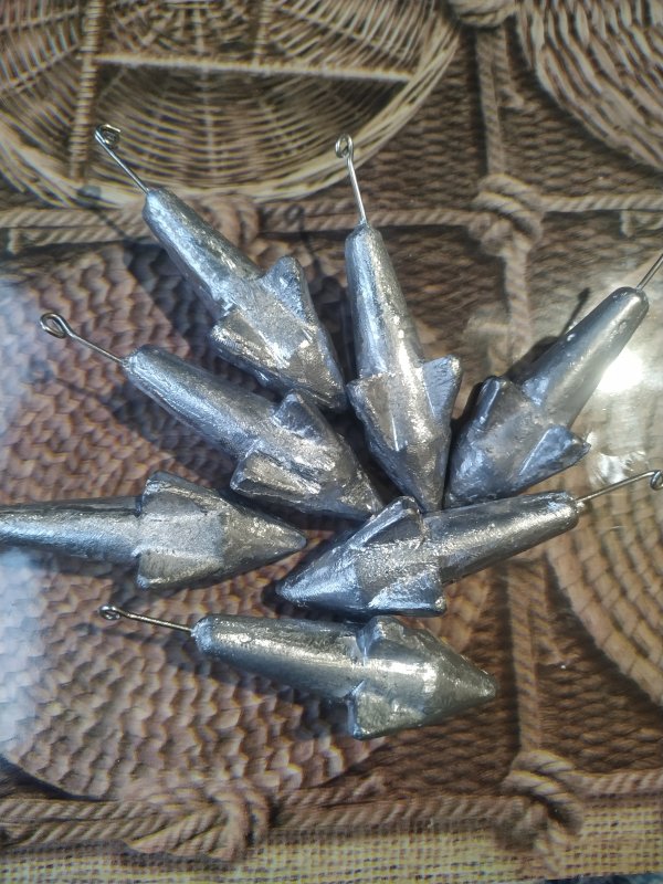 Слепил форму под «ракету» 110 г, сушил в микроволновке и лил свинец в камине. На десятом грузике форма начала сдавать.