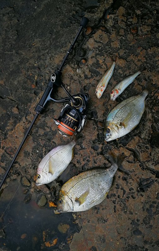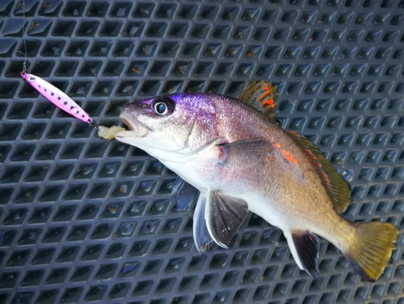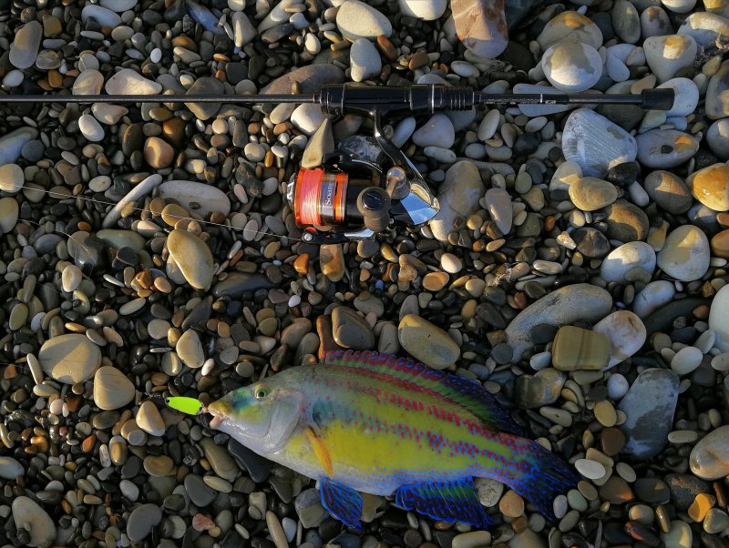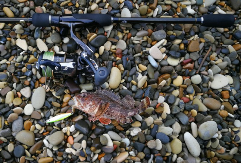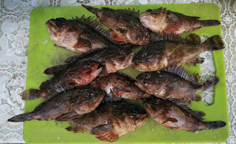 С лодки по своим местам — 8, потом 20 штук, в прилове барабулька, ставрида, скорпена и маленький горбылёк отпущен. На пирсе Лермонтово — легче прятаться от ветра.