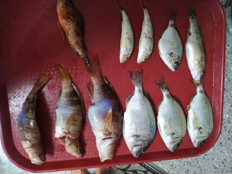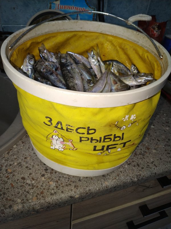 Крупная ставрида на самодур в 1 км, 22 м. Окунь на резаную ставриду. Барабуля и карась на креветку с 13 м, 20–40 м от берега. Закоптили всё, ставриду пожарили.