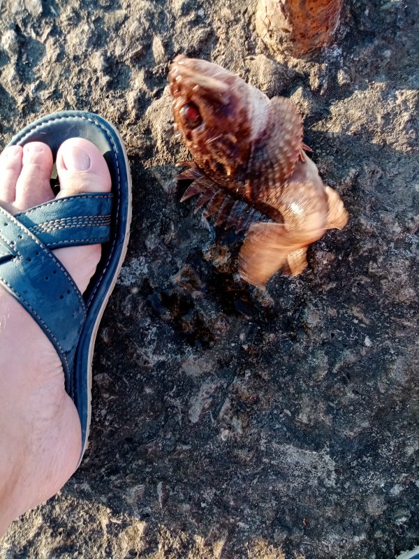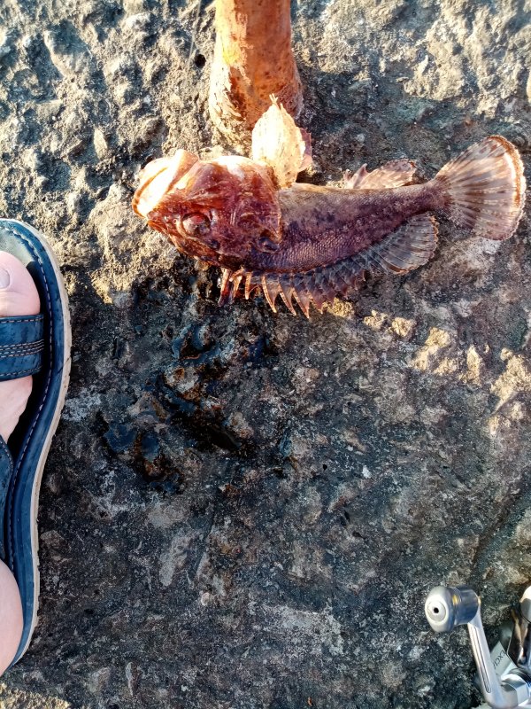 С утра одна мелкая скорпена и тычок. На буне вымучил хорошую скорпену и кукушку, отпустил после фото.