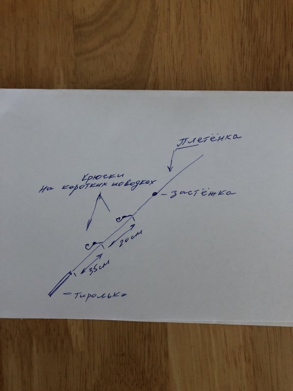 Поводок делаю из флюра отдельно. Длина под бомбарду — побольше, чтобы приманка играла свободно.