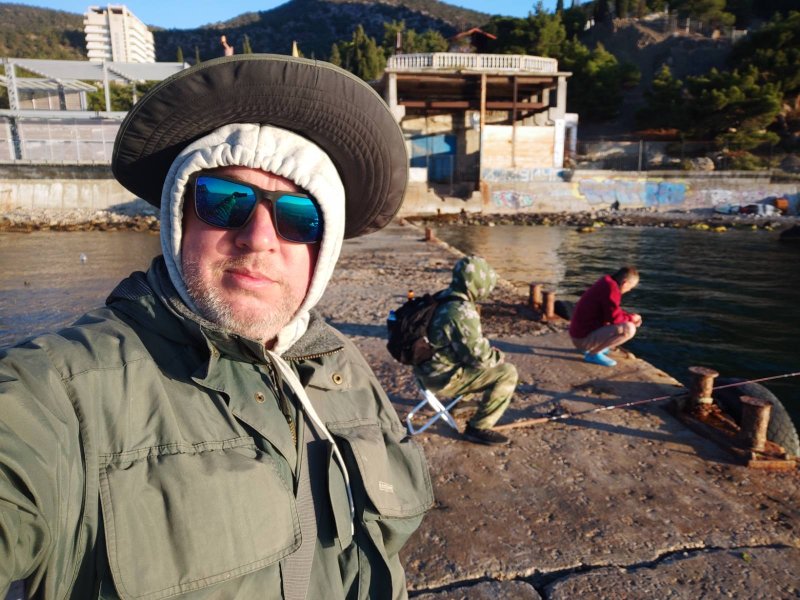 Наконец сын с берега поймал рыбу. Настрой поднят. Морская рыбалка в Судаке продолжится вечером.