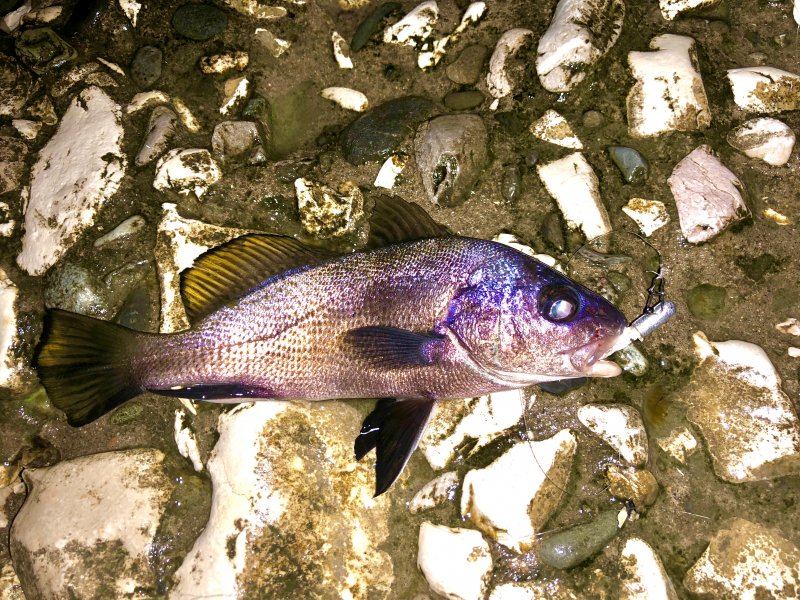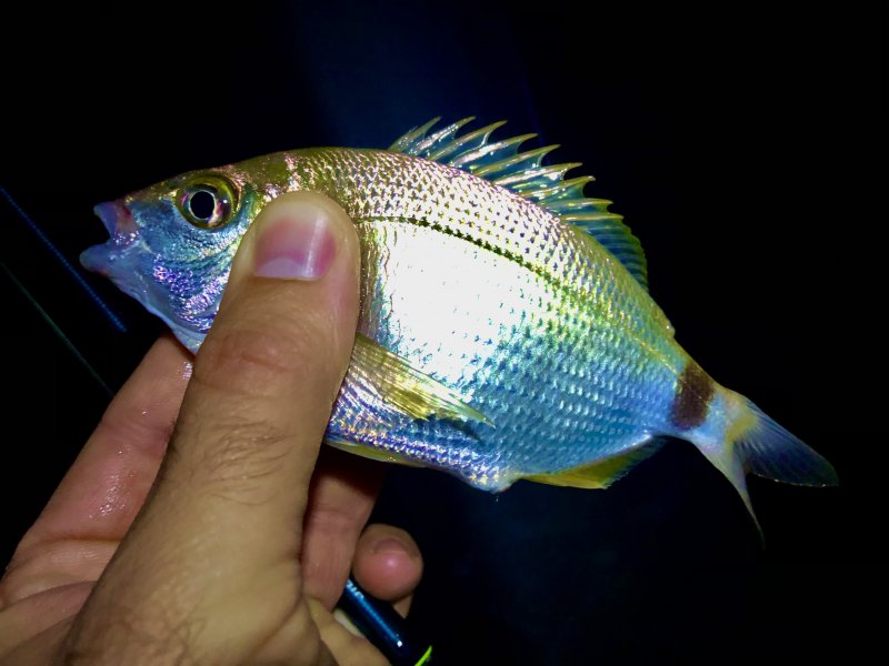 Ночью на Багрыпше — десять секунд непрерывного фрикциона и сход. Вытаскиваю — крючка нет. На мелкий силикон и маракью — сразу вакханалия мелочи.