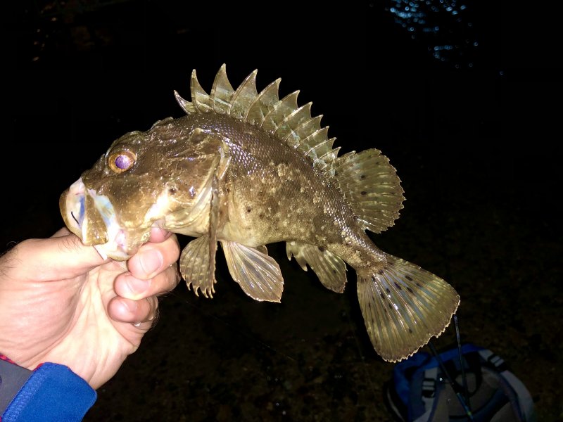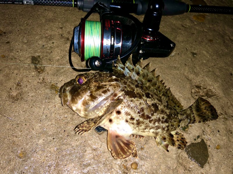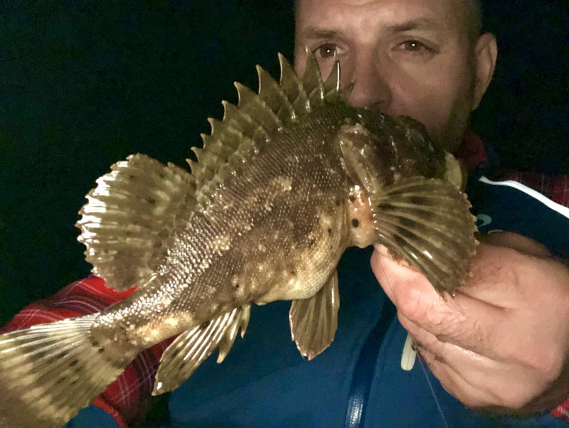 Три ночных и одно утро. Скорпены много, зеленуха, ставрида подходила редкими окнами. Ласкиря мало, горбыля не было вообще. В Сочи рыбы заметно меньше, чем в Абхазии.