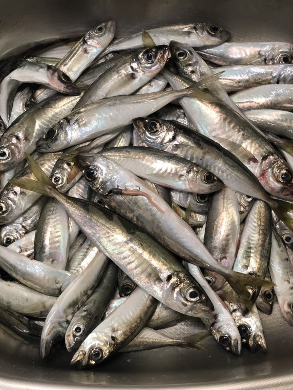Днём мелкая ставрида и смарида, один аджимастер пал жертвой. К темноте укрупнение, светонакопительная двухвостка шла без подсветки. Медленная проводка в толще, к полуночи — полный кан.
