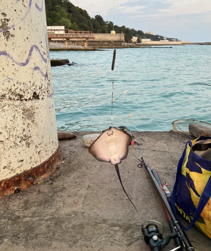 Мужик поймал, хвост отрезал и в садок. Не знал, что они съедобные. Фотография трофея это подтверждает.