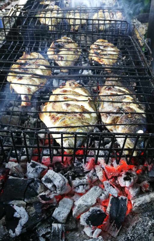 Крупный карась на гриле прост. А уха из скорпен — любимая: половина кастрюли рыбы, икра, печень, молоки, специи. Водку охладить в морозилке обязательно.)