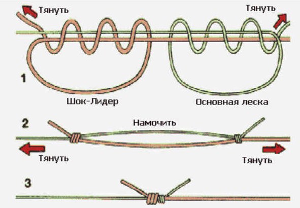 Авторитетный рыболов из Севастополя считает «морковку» громоздкой на лайте. Предложил альтернативный узел. Связал флюр со шнуром — получилось компактно.