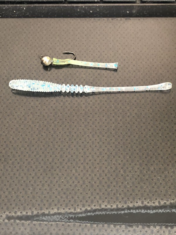 Подошла понизовка, вода холодная. Рыба есть, но игнор на 1 г и тяжёлые веса. Облегчился: голова 0.5 г, хвостик Aqua Wave, очень медленная проводка. Клев ленивый, без ударов, но клевать стало. Ключик подобран — рыбалка состоялась.