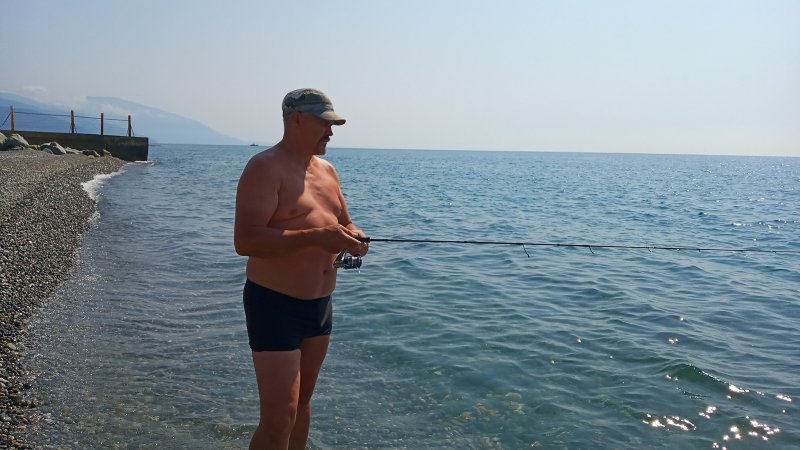 Сентябрь, район порта. Беру рачков под скорпену и немного креатур на горбыля. Воблеры и пилькеры пока не зашли, из пилькерных трофеев был один сарган у границы Абхазии. Морская рыбалка в Имеретинке по плану.