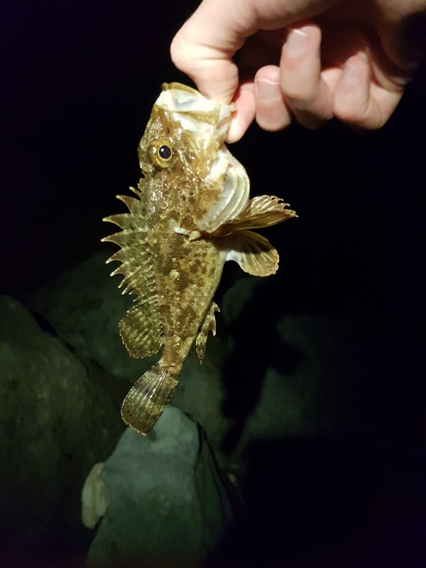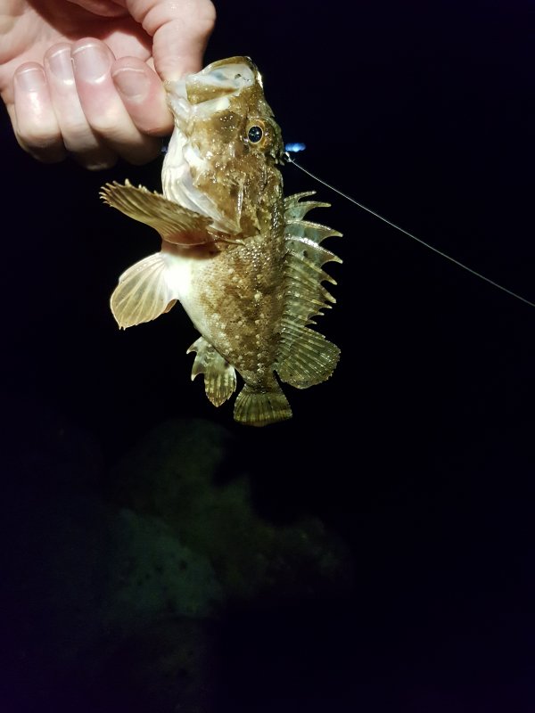 Сначала крупная скорпена без позирования, затем семь средних. Перешёл на микро джиг - две мелкие ставридки. Колебло под конец без реализации. Вечер удался.