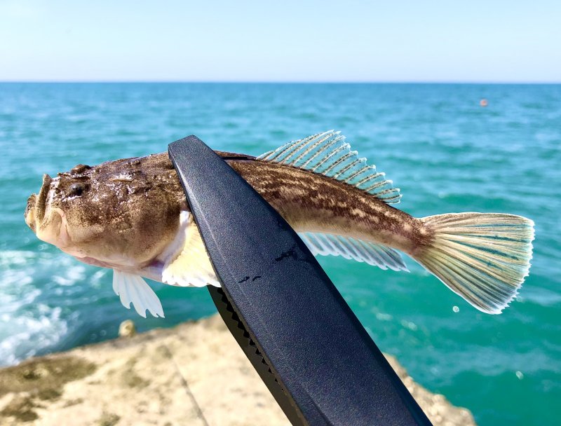 Полчаса отводным с пирса, пара поклёвок и рыба похожая на европейского звёздочёта. Дно ровное, без зацепов. Жду ночи - хищник может выйти ближе.