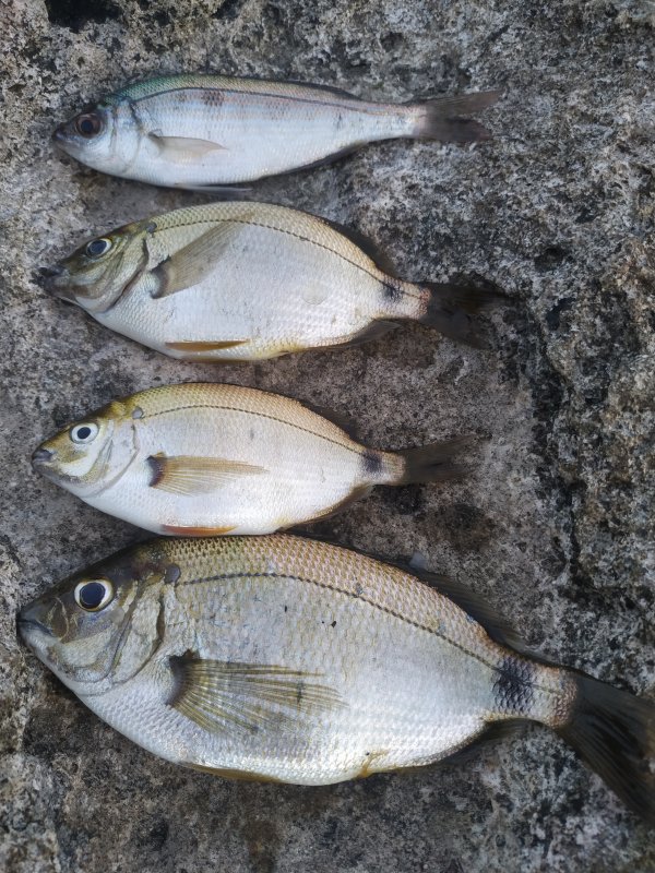Подъехал к 18:00, тонущая 20 г, флюр 0.10, поводок 2 м, насадка земляной червь. Место с «ступенькой» - карась норовит уйти под камень. Итог: три карася и окунь, два обреза о скалу. Настроение отличное.