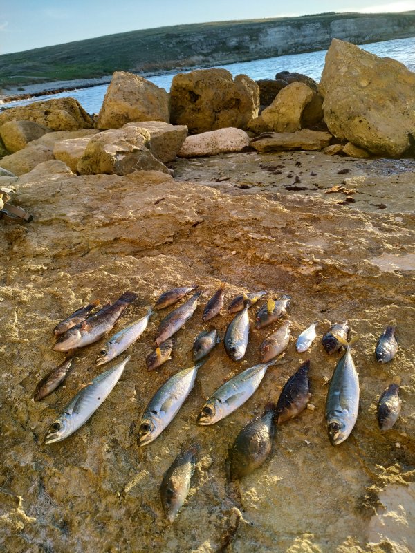 Некомфортный накат. С двухметрового поводка ушёл на метровый. По дну — зелёнушка не даёт скучать и шесть ставридок в зачёт. Луфарь откусил рекордно много.